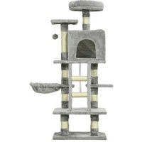 132cm Multi-Level Cat Tree Tower – Sisal Scratching Posts, Plush Hammock & House, Grey | Wowcher