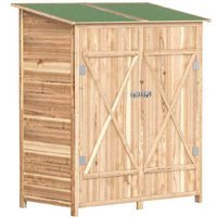 140 x 75cm Fir Wood Vertical Storage Shed with Lockable Asphalt Roof – Weatherproof Outdoor Garden Equipment Cabinet | Wowcher