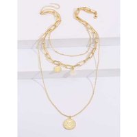 18ct Gold Plated: Durable copper base with lasting gold shine. Layered Design: Three distinct chains for a bold, statement look. Hypoallergenic: Crafted to minimise skin irritation. Quality Craftsmanship: Made for everyday wear and special occasions. Adjustable Length: 63cm chain with 5cm extension for a custom fit. Royal Pendants: Features a pearl-effect charm and Queen-embossed coins. No Assembly Needed: Ready to wear straight from the box.