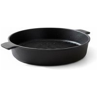 Authentic grill ridges: Raised ridges create real barbecue-style grill marks while lifting food away from excess oil. Low-maintenance design: Easy to clean and maintain, with a simple lid-free design. Heavy-duty cast iron build: Uses durable cast iron that supports daily cooking and offers long-lasting, reliable performance. Multi-surface compatibility: Works with gas, electric, induction hobs, and ovens for flexible cooking anywhere. Size & colour: 27cm diameter round grill pan in classic black. Black round cast iron grill pan: This heavy-duty cast iron grill pan is designed for indoor and outdoor cooking, delivering authentic barbecue-style results at home or at the campsite. Even heat distribution: The solid construction delivers consistent heat with no hot spots, helping food cook evenly every time.