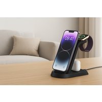 3-in-1 Fast Wireless Charger Dock for iPhone, Apple Watch & AirPods – Compact Stand, Fast Charging, Universal Compatibility | Wowcher
