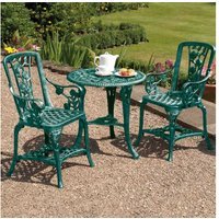 3-Piece Cast Aluminium Rose Bistro Set – Weather-Resistant Green Outdoor Furniture | Wowcher