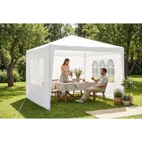 Waterproof Polyethylene Canopy: Shields you from rain and sun. Choice of Colours: Select grey, blue, white or green to suit your garden. Removable Side Walls: Customise shade and airflow as needed. Spacious Coverage: 3m x 3m area fits gatherings, BBQs or lounging. Heavy Duty Frame: Sturdy, reliable construction for long-term use. Fast Express Delivery: Redeem by midday for delivery within 24 hours.
