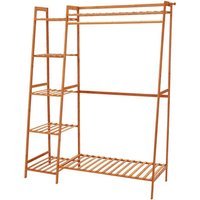 5-Tier Bamboo Garment Rack with Hooks and Shelves | Wowcher