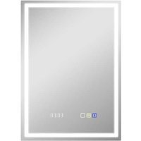 50x70cm Wall Mounted LED Vanity Mirror with Clock & Demister Pad – Silver, Frameless, Anti-Fog, Dimmable | Wowcher