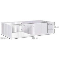 Large Size: 50H x 206L x 100Wcm—ideal for all breeds. Spacious Design: Two-room layout for comfort and safety. Adjustable Panels: Customise space as your dog grows. Durable Pinewood: Built to last and withstand playful pups. Three Doors: Easy access for you and your pets. Ventilated & Wind-Resistant: Keeps your dog cosy and secure. Non-Slip Pads: Stays stable on any floor surface.