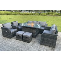 9-Seater Rattan Garden Dining Set with Fire Pit & Reclining Sun Loungers | Wowcher