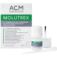 Description Molutrex Solution by ACM Laboratories is a treatment against benign, highly contagious skin infection, which usually affects the skin and sometimes the mucous membranes, and has been on the rise for 10 years, especially in children with atopic skin. Indication Molutrex is a liquid for topical use recommended for the local cutaneous treatment of Molluscum contagiosum (highly contagious viral skin infection). Medical device classified as IIa. This is a regulated medical device, which, under these regulations, bears the CE seal. Intake mode It is recommended to use 1 to 2 applications a day until the appearance of redness (generally 2 to 10 days). It does not need rinsing. It can be used on the face and body (avoid the eye contour and mucous membranes), for adults and children from 2 years. Precautions This product may cause more or less undesirable effects, particularly a burning or transient irritation sensation. The intensity of the irritation depends on how sensitive the skin is and the amount of product applied. Follow the instructions for use. Hyperpigmentation or hypopigmentation can occur after the disappearance of some Molluscum contagiosum. This will clear up spontaneously. Always notify your doctor or pharmacist of any unwanted side or irritant effects. Composition Potassium hydroxide, Purified water.Shop Online Acm Molutrex Solución 3ml at best price. Product features: – Body Health: Warts