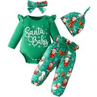 Adorable prints: Features Santa, snowman, snowflakes, and reindeer. Great gift idea: Perfect for new parents and Christmas photos. Festive accessories: Includes matching beanie hat and bow. Ultra-soft comfort: Lightweight cotton-blend for all-day wear. Easy dressing: Designed for quick outfit changes. Multiple sizes: Fits babies from 0-18 months. Two classic colours: Choose red or green for festive flair.