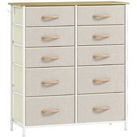 Beige Fabric Chest of 10 Drawers – Modular Bedroom Storage, Steel Frame, High Capacity | Wowcher