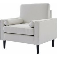 Beige Linen-Upholstered Mid-Century Single Armchair Sofa | Wowcher