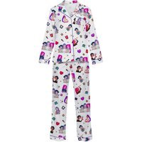 Ultra-Soft & Breathable: Made with a premium 95% polyester and 5% elastane blend for comfort all season. Easy Care: Vibrant colours stay bold wash after wash (machine wash at 30 degrees). Exclusive K-Pop Inspired Design: Iconic K-Pop Demon Hunters print for standout comfort. Versatile Styling: Wear as coordinated lounge set or as separate pieces. Colour Options Choose from Pink or White. What’s Included?: Receive a K-Pop Demon Hunters inspired top and bottoms pyjama set! Size Options: Available in Small to Extra Large.