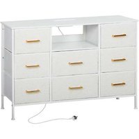 Boucle Fabric 8-Drawer Modular Storage Chest with USB/AC Charging – Cream White, Modern Bedroom Dresser | Wowcher