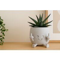 Versatile Placement: Suitable for indoor windowsills, desks, patios, or outdoor garden settings. Unique Statement Piece: Showcases a smiling face giving the middle finger for playful garden or home décor. Great Gift Idea: Perfect for plant lovers, quirky décor fans, and memorable housewarming presents. Compact Size: Measures 10cm x 9cm x 7cm—ideal for succulents, cacti, or small houseplants. Multiple Colour Options: Choose from white, grey, gold, or multicolour to match your style. Durable Resin Build: Made from hard-wearing resin to withstand daily use and weather changes.