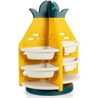 Dimensions: L 74cm x W 74cm x H 106cm is perfect height for kids to easily reach all their belongings. Features: This storage shelf offers maximum convenience with ample space, there are eight bins and four shelves and the 360⁰ rotation feature allows easy access from all angles. Material: Crafted from durable PE material, this toy storage organiser is designed to withstand the playful energy of children. Design: The adorable pineapple design is perfect for the little ones who will be attracted to the shelf and will want to tidy up. Safety: The large base provides overall stability, eliminating the risk of tipping over, while rounded edges ensure a safe environment. Perfect for: This organiser is perfect for toys, blocks, doll, stations, books and more! Toy organiser: Keep the playroom tidy with a children’s pineapple shaped storage organiser.