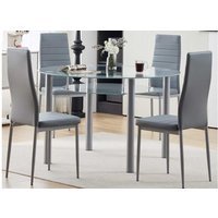 Durable Glass Tabletop: Scratch-resistant and easy to wipe clean. Padded Faux Leather Chairs: Comfortable, supportive seating for four. Space-Saving Round Design: Ideal for compact or open-plan dining rooms. Simple Assembly: Clear instructions included for quick setup. Customisable Size Options: Choose from two table sizes. Modern Grey Finish: Complements any décor style.