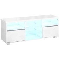 Contemporary High Gloss TV Stand Cabinet with LED Lights & Storage – MDF & Glass, Fits up to 55″ TVs | Wowcher