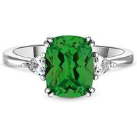 Three-Crystal Design: Features a prominent 9mm x 7mm centre crystal flanked by accents. Versatile Style: Perfect for special occasions or daily elegance. Emerald Cut: Classic emerald-cut centre stone for maximum sparkle. Emerald Green Crystal: Vivid centrepiece with eye-catching brilliance. Comfort Fit: Smooth band in US 6 / UK M for everyday wear. Rhodium Plated: Durable finish resists tarnishing and keeps its shine.