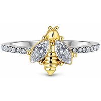 Diamond Style Rhodium Plated Bee Statement Ring – Yellow Gold Accent, Tarnish Resistant, UK O / US 7 | Wowcher