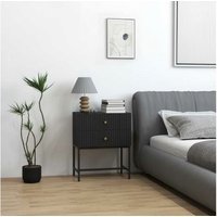 Elegant Black MDF Two-Drawer Bedside Table with Metal Base – Contemporary Bedroom Storage | Wowcher