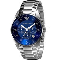 Emporio Armani AR5860 Men’s Chronograph Quartz Watch – Silver Stainless Steel, Blue Dial, Water-Resistant | Wowcher