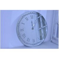 Flowery Silver Glitter Mirrored Glass Wall Clock – Decorative Roman Numeral Wall Art, 35cm | Wowcher