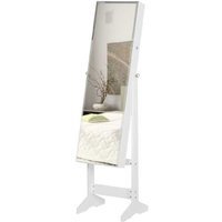 Full-Length Glass: See your entire look in crystal-clear reflection. Adjustable Tilt: Find your perfect viewing angle easily. Sleek Modern Finish: Complements any bedroom or dressing area. Quick Dispatch Option: Redeem by midday for 48hr delivery. Spacious Storage: Organise jewellery and accessories behind the mirror. Sturdy White MDF Frame: Durable and modern for everyday use. Freestanding Design: No wall mounting needed—move it anywhere. Lockable Door: Added security for peace of mind.