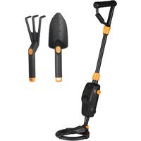 Treasure hunt kit: A lightweight and easy-to-use metal detector with rake and shovel. Portable design: Compact and easy to take on outdoor adventures and treasure hunts. User-friendly operation: Simple controls make it suitable for beginners and children. Waterproof search coil: Suitable for shallow water use, expanding search possibilities. Custom volume control: Adjust speaker volume to better identify signals during searches. Lightweight build: ABS plastic material makes it easy to carry and handle. Wide usage: Perfect for detecting hidden metal objects, jewellery, coins, and more. Designed for discovery: Ideal for searching gold, silver, and other metals in soil or sand. Adjustable sensitivity: Easily set the detector’s sensitivity for different search needs. Clear detection alerts: Audio signal and LCD display notify you when metal is found.