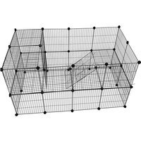 Durable Metal Wire: Sturdy steel construction resists chewing and play. Quick Assembly: Sets up or packs down in minutes—ideal for temporary or permanent use. Express Delivery: Order by midday for 24-hour UK delivery. Spacious Design: Generous 140cm x 70cm x 70cm interior gives small pets room to roam. Customisable Panels: Arrange panels to fit your space or pet’s needs. Safety Mesh: 4x4cm mesh spacing keeps pets secure while providing ventilation. Sleek Look: Modern black finish fits any décor. Easy Access: Large climbing ladder and stairs for playful exploration.