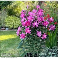 Impressive Blooms – Produces striking double flowers up to 20cm across for dramatic garden impact. Easy to Grow – Thrives in well-drained soil and sunny or partially shaded positions; ideal for gardeners of all levels. Flowering Period – Blooms typically appear from June to August, brightening your summer garden. Vivid Colour Contrast – Deep pink petals edged in white create a standout display in borders or pots. Pollen-Free Variety – Allergy-friendly lilies ensure everyone can enjoy their beauty without discomfort. Versatile Planting – Perfect for beds, borders, patio containers, and as cut flowers indoors.