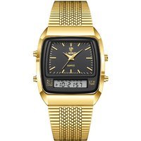 Stainless Steel Case & Band: Durable, stylish, and comfortable. Dual Display: Analog and digital readouts for easy time tracking. Luminescent Hands: Read the time in low light or at night. Scratch-Resistant Glass: High-hardness face resists daily wear. Water Resistant: Up to 30m (100ft) – ready for splashes and brief immersion. Multiple Functions: Alarm, dual time zones, week display. Precision Quartz Movement: Reliable timekeeping for everyday confidence. Gift-Ready Box: Arrives ready to impress.