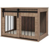 Luxury Dog Crate Table with Cushion – Medium Breed Furniture – 80×54×57cm – Brown | Wowcher