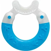 The MAM Bite&Brush Teether Blue (EAN ) is designed with varied textured surfaces to provide relief during teething while simultaneously promoting oral hygiene habits from an early age. Its ergonomic shape and lightweight design ensure easy grip and manipulation by small hands. MAM utilizes innovative Dimpled surface technology on the teether. This textured design massages gums and provides varied tactile stimulation, aiding in the eruption of teeth.The brush-like bristles gently clean emerging teeth and introduce the concept of oral care. The teether is constructed from BPA-free, phthalate-free, and PVC-free materials, ensuring safety and biocompatibility. The material selection prioritizes durability and resistance to chewing while remaining soft enough for delicate gums. MAM products are developed in collaboration with medical professionals, including pediatricians and dentists. This research-driven approach ensures that the design and functionality of the Bite&Brush Teether align with developmental needs and promote optimal oral health. The teether can be cooled for added soothing relief, but avoid freezing.Shop Online Mam Bite&Brush Teether Blue at best price. Product features: – Baby Accessories: Teethers