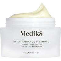 Product Overview – Medik8 Daily Radiance Vitamin C™. Medik8 Daily Radiance Vitamin C™ is a revolutionary 2-in-1 moisturiser that combines the brightening power of 7% vitamin C with broad spectrum SPF 30 protection. This clinically-proven formula addresses multiple skin concerns in one elegant step, making it the perfect introduction to professional-grade vitamin C skincare and Medik8’s renowned CSA Philosophy.. Formulated with Tetrahexyldecyl Ascorbate, a highly stable and lipid-soluble form of vitamin C, this lightweight cream delivers powerful antioxidant protection whilst visibly brightening and smoothing the complexion. Enriched with Hyaluronic Acid, Glycerin, and Vitamin E, the formula provides all-day hydration whilst shielding skin from environmental damage and premature signs of ageing. Suitable for all skin types, this cashmere-soft cream melts effortlessly into the skin without any greasy residue.. Key Benefits at a Glance:. Immediate Benefits:. Instant brightening and hydration – clinically proven to deliver visible radiance after just one application. Powerful antioxidant protection – shields skin from harmful free radicals and environmental stressors throughout the day. Broad spectrum SPF 30 defence – protects against both UVA (ageing) and UVB (burning) rays with premium UV filters. Lightweight, non-greasy texture – 94% of users agree it feels more like a moisturiser than a sunscreen. Perfect makeup base – creates a smooth, radiant canvas with subtle blurring effects for seamless application. Long-Term Benefits:. With consistent daily use, Daily Radiance Vitamin C™ works to visibly improve skin’s overall health and appearance. The formula’s collagen-boosting properties help to smooth existing fine lines and wrinkles, whilst the sustained antioxidant protection prevents future signs of premature ageing. Clinical studies demonstrate that skin feels noticeably firmer in just 7 days, whilst the brightening benefits continue to enhance radiance and even out skin tone over time.. The synergistic combination of vitamin C and vitamin E creates a rechargeable antioxidant network that works continuously to defend against oxidative stress, leaving your complexion brighter, smoother and more youthful-looking with each application.. How will it feel on my Skin?. Daily Radiance Vitamin C™ features a distinctive cashmere-soft texture that transforms the morning skincare experience. Upon application, the lightweight cream melts effortlessly into the skin, delivering an instant surge of hydration without any sticky or greasy after-feel. The formula absorbs rapidly, leaving skin feeling supple, comfortable and perfectly balanced. Many users describe the sensation as luxuriously nourishing yet surprisingly weightless, with a subtle natural citrus scent that awakens the senses each morning.. Who is it Suitable For?. All skin types, including sensitive skin. Those new to vitamin C or seeking a gentle introduction to active ingredients. Anyone looking to simplify their morning routine with a multi-functional product. Individuals concerned about premature ageing, fine lines or uneven skin tone. Those seeking daily sun protection combined with skincare benefits. Skin requiring antioxidant defence against environmental stressors. Anyone aged 25+ looking to prevent and address early signs of ageing. Perfect for those who want a lightweight SPF that works beautifully under makeup. Why choose Medik8 Daily Radiance Vitamin C™?. Our experts recommend this bestselling formula as the cornerstone of an effective anti-ageing regime. With 88% of users agreeing it’s the best vitamin C cream they’ve used, this clinically-proven formulation delivers exceptional results backed by independent studies, whilst maintaining the gentle, non-irritating profile that makes it suitable for daily use on all skin types.