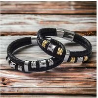 Men’s Genuine Leather Adjustable Bracelet – Engraved, Hypoallergenic, 21.5cm | Wowcher