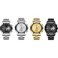 Precision Movement – Reliable quartz movement ensures accurate timekeeping. Durable Construction – Stainless steel case and strap for lasting wear. Water Resistance – Waterproof design ready for any adventure. Functional Calendar – Easy-to-read calendar keeps you on schedule. Stylish Design – Oversized dial and sleek metal body in black, white, or gold.