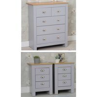 Modern Heritage Bedroom Furniture Set – Solid Oak Tops, Storage Drawers, White or Grey Finish | Wowcher