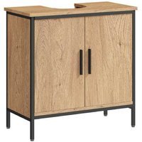 Space-Saving: Compact design fits snugly under most basins. Modern Style: Chic oak finish with black frame for a contemporary look. Versatile Fit: 20 x 20 cm U-shaped cut-out suits most basin types. Stable Build: Adjustable foot pads ensure balance on uneven floors. Easy to Clean: Wipe-clean surfaces for effortless maintenance. Dimensions: Inner cabinet: 56W x 26D x 44H cm. Generous Capacity: Holds up to 30kg overall, 10kg on top/shelf. Durable Materials: Scratch-resistant melamine-coated particleboard and sturdy steel frame. Adjustable Storage: Three-level shelf adapts to your needs.