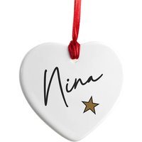 High-Quality Ceramic: Durable, elegant finish for years of use. Heart & Star Design: Charming shape stands out on any tree. Perfect Size: H 8cm x W 7cm x D 0.5cm – ideal for all trees. Memorable Gift: Thoughtful present for friends or family. Personalised Touch: Add any name for a unique festive statement. Easy to Hang: Lightweight and ready to display.