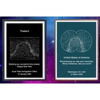 Format: Order conveniently online; physical prints delivered to your door. Multiple Purchases: Buy extra vouchers as thoughtful gifts for friends and family. Perfect for: Ideal for commemorating birthdays, anniversaries, weddings, or special milestones. Surprise your loved one or treat yourself. What’s On Offer: Create a bespoke constellation map showing the night sky at any chosen time and place, fully personalised with your message and design. Personalisation: Customise every detail – select the date, location, and add a heartfelt message for a truly unique keepsake. Valid: Exclusively available via app. Subject to availability. Gift Options: Choose from high-quality poster or canvas prints to suit your space and style. Merchant: Map Share Online – specialists in custom star maps and sentimental gifts.