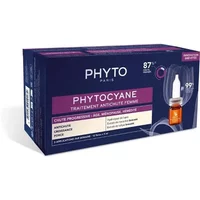 Phytocyane Women’s Hair Loss Treatment What is it? What is it used for?Hair loss treatment that acts on the roots to effectively stop hair loss and stimulate the growth of stronger, thicker and better quality hair. What are the benefits of Phytocyane Progressive Hair Loss Treatment?- Helps fight against root miniaturisation and hair thinning. – Strengthens the anchorage of the hair and favours its support during the growth phase. – Essential action on hair growth and the hair cycle. – Strengthens the hair structure. Main component of Phytocyane Hair Loss Treatment.- Hydrolysed lupine, stimulates hair growth and slows down hair loss. Provides essential amino acids. – Organic maca extract, increases the number of mitoses in the hair matrix. Protects hair from endogenous and exogenous stress. Increases collagen density in the underlying dermal tissue, helping to reinforce the adhesion of the hair to the scalp. Stimulates cell proliferation in the epithelial sheath. – Tulip extract, helps to revitalise the scalp. Contributes to revitalising the hair, improving both its softness and natural shine. What instructions should you take into account?In case of contact with eyes, rinse thoroughly with water. External use. What is the composition of Phytocyane Progressive Hair Loss Treatment for Women 12 ampoules x 5 ml Phyto?Aqua / Water / Eau. Alcohol Denat. Hydrolyzed Lupine Protein. Panthenol. Pyridoxine Hcl. Maltodextrin. Lepidium Meyenii Root Extract. Ethyl Ester Of Hydrolyzed Silk. Sodium Benzonate. Tulipa Gesneriana Flower Extract. How to use Phytocyane Women’s Progressive Hair Loss Treatment 12 Phyto Ampoules x 5 ml?Place the applicator. After shampooing, apply the entire contents of the ampoule strand by strand on towel-dried hair. 3 applications per week for 3 months.Shop Online Phyto Phytocyane Progressive Treatment 12x5ml at best price. Product features: – HAIR: Treatments- By Need: Anti-hair loss
