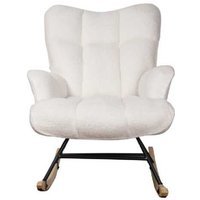 Cloud-soft comfort: Plush teddy fabric and thick cushioning. Ergonomic support: High backrest cradles your back and shoulders. Smooth rocking: Stable 15 b0 tilt for gentle, quiet motion. Quick assembly: Set up in minutes. Floor-safe: Felt pads protect hard floors. Sturdy build: Metal frame and wooden rockers hold up to 150kg.