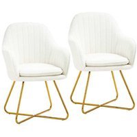 PRICE DROP! Set of 2 Sherpa Fleece Dining Chairs – Cream, Plush Upholstered Accent Armchairs, Modern Steel Legs | Wowcher