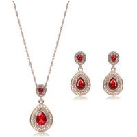 Red Crystal Jewellery Set – Gold-Tone Copper, Water Drop Necklace & Earrings, Elegant Matching Gift | Wowcher