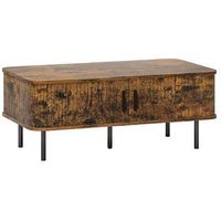 Rustic Brown Mid-Century Modern Coffee Table with Storage & Sliding Tambour Doors – MDF, Steel, Space-Saving | Wowcher