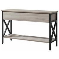 Multi-functional Storage: Two drawers and open lower shelves keep essentials organised. Dimensions: 100 cm (W) x 30 cm (D) x 80 cm (H). Quick Assembly: Set up with ease—hardware included. Durable Construction: Thick particle board top with sturdy black metal legs. Generous Tabletop: Display books, drinks, or décor in style. Easy-Clean Surface: Stain- and scratch-resistant for low-maintenance living. Rustic Country Style: Warm grey top and farmhouse flair suit any decor. Space-Saving Design: Slim shape fits narrow living rooms and entryways.