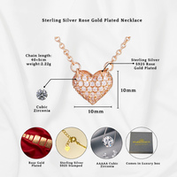 Sterling Silver Rose Gold Heart Pendant Necklace – Hypoallergenic, Sparkling Cubic Zirconia, Gift-Ready | Wowcher