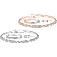 Stylish Convenience: Choker necklace, two-row bracelet, and classic 5mm stud earrings. Coordinated Trio: Necklace, bracelet, and earrings for effortless matching. Luxury Pouch: Includes velvet jewellery pouch for gifting or storage. Versatile Design: Dress up any outfit for any occasion. Premium Materials: Features fine Austrian Crystals and genuine Crystals From Swarovski! Choice of Finish: Available in sleek rhodium-plated silver or elegant rose gold. Durability: Rhodium plating offers long-lasting, highly reflective shine.