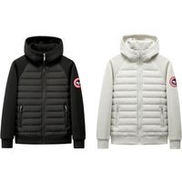 Convenient full-zip fastening: Smooth front zipper allows quick layering and easy temperature adjustment on the go. Durable easy-care construction: Made from 100% polyester for long-lasting wear, shape retention, and effortless machine-wash maintenance. Inclusive size range: Offered in sizes S, M, L, XL, and 2XL (UK6-UK14) to ensure a comfortable, adaptable fit. Secure functional storage: Practical side zipper pockets safely store your phone, keys, and daily essentials while maintaining a clean finish. Casual hooded jacket: Canada Goose-inspired lightweight quilted jacket styling combines modern streetwear appeal with practical everyday warmth and comfort. Stretch-knit mobility panels: Soft knitted fabric at the shoulders and sleeves enhances flexibility, ensuring unrestricted movement throughout the day. Relaxed loose-fit silhouette: Comfortable cut flatters all body types and layers easily over T-shirts, sweaters, or hoodies. Protective hooded design: Relaxed hood adds extra coverage against cool breezes while reinforcing the jacket’s casual, versatile look. Lightweight quilted insulation: Embossed filling delivers dependable warmth while maintaining a breathable, non-bulky silhouette ideal for transitional weather. Versatile everyday styling: Available in classic black or crisp white to complement both casual and smart-casual outfits.
