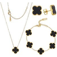 Durable Material: Crafted from robust alloy for lasting shine. Coordinated Design: Matching necklace, bracelet and earrings for a unified look. Complete Set: All three pieces feature the iconic four-leaf clover motif. Colour Variety: Choose from seven stylish shades to suit any outfit. Adjustable Fit: Bracelet adapts easily to most wrist sizes. Perfect Gift: Symbolises luck and well-being – ideal for gifting.